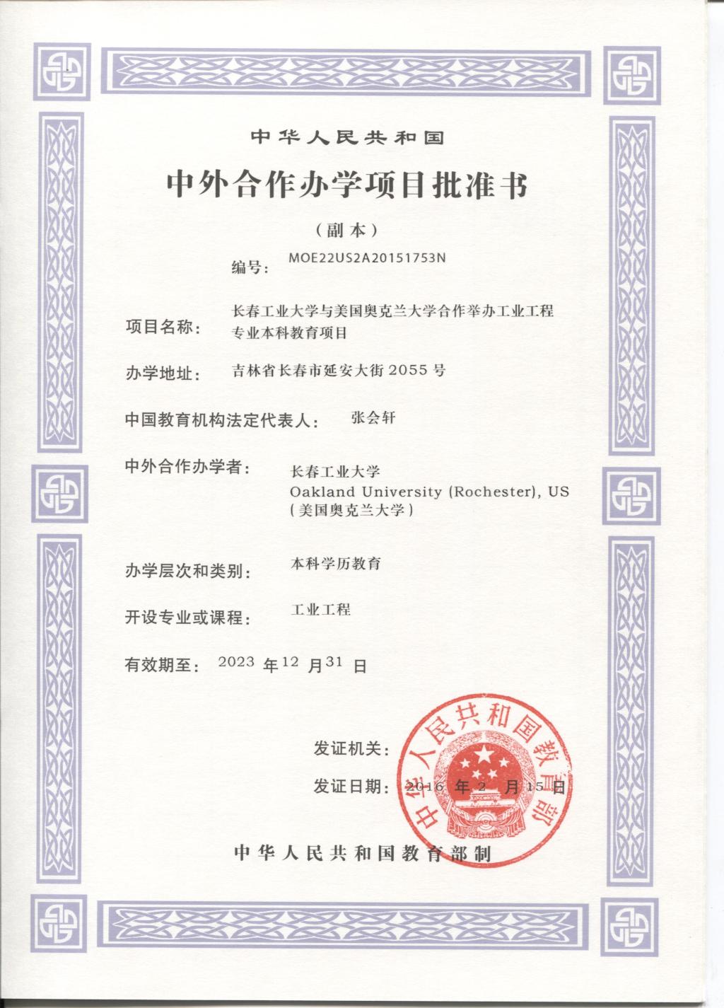 自拍流出 与美国奥克兰大学合作举办工业工程本科教育项目