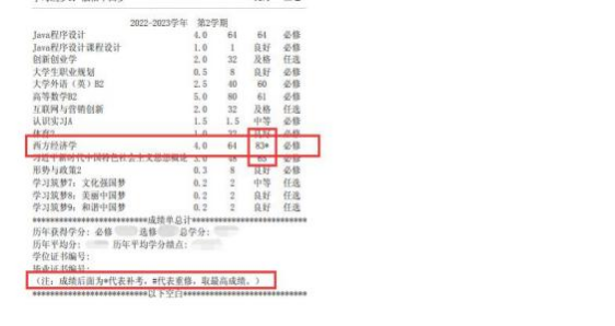 4.如果明确需要显示补考重修标记,则在不显示补考重修标记、不显示不及格课程处消勾选。