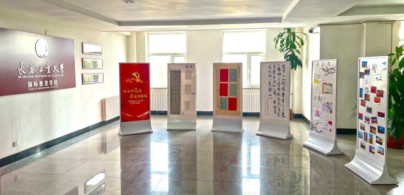 作品评选结束之后,部分代表作品在南湖校区办公楼五楼大厅进行展示,以激励和引领广大师生坚定理想信念、传承红色基因、践行初心使命。