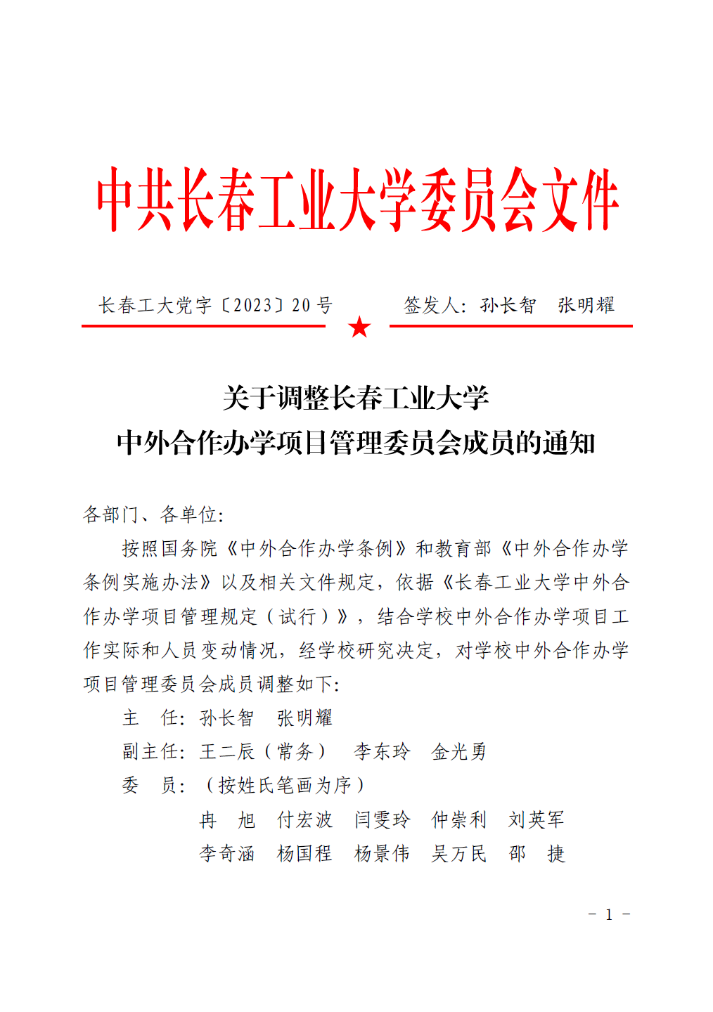 关于调整自拍流出 中外合作办学项目管理委员会成员的通知
