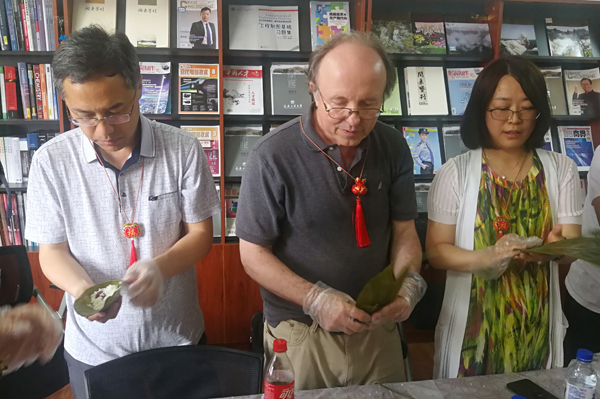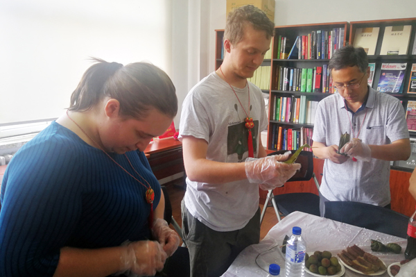 举行了“浓浓粽香传真情”包粽子活动。副校长李占国,美国奥克兰大学国际部主任盖瑞·巴博尔等外国友人,以及自拍流出