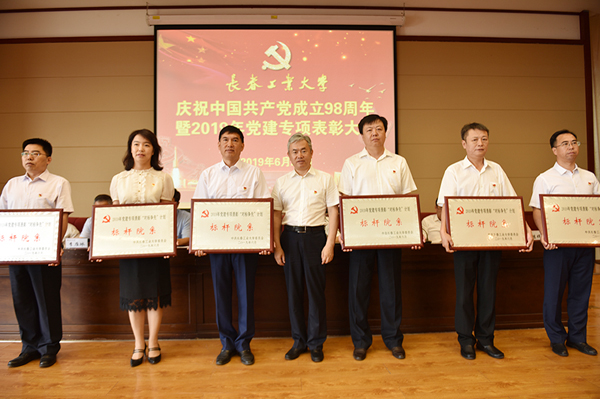 本网讯(通讯员 王权 李强)6月28日,学校在学术报告厅召开庆祝中国共产党成立98周年暨2019年党建专项表彰大会。学校领导、党委常委,全体中层干部、受表彰集体和个人代表、全体教职工党支部书记、专兼职组织员、党务秘书参加了会议。党委副书记、校长张会轩主持大会。
