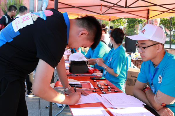 志愿者们从早上5点就开始了忙碌的迎新准备工作。今年报到仍采取“一对一”方式,每名新生由一名志愿者全程带领办理注册报到手续,耐心细致地为新生和家长答疑解惑。学院专门为新生发放了装有《致2019级新生及家长的一封信》和中外合作办学项目宣传册,以及学校编印的《学生学习与生活指导手册》等材料的手提袋,为新生入学后的学习和生活提供贴身指导。