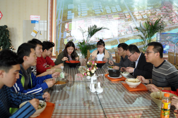 餐桌上,师生们边吃边聊,畅所欲言,同学们谈学习、话理想、说困惑,学院领导不时关切地询问“专业课讲到哪里了?”“学习方面有什么问题?”“以后毕业有何打算?”同学们在交谈中咨询了生活和学习中的问题和困惑,都得到了领导和老师们的满意答复。学院党总支书记胡刃锋勉励同学们要坚定理想信念,树立人生目标,不断培养竞争意识,要在学习上发力、在生活中自立、在工作中努力,以积极健康向上的心态迎接未来的挑战。