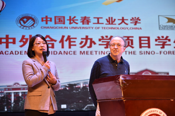 美国奥克兰大学盖瑞·巴博尔和杨连祥教授就合作办学项目学生出国优惠条件、在美如何学习、毕业就业前景及攻读硕士、博士情况等进行了介绍,同时结合中外合作办学项目特点,指出项目优势,鼓励同学们利用好学校提供的资源和平台,努力学习提高成绩,并欢迎优秀学生赴美留学。已完成博士学位、毕业回国就业的首届优秀校友代表,结合自己的出国求学经历,与现场同学们分享了自己的学业规划和留学经验。