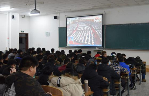 直属党支部组织师生分别在南湖和北湖校区收看网络直播,并对政府工作报告展开热烈讨论。
