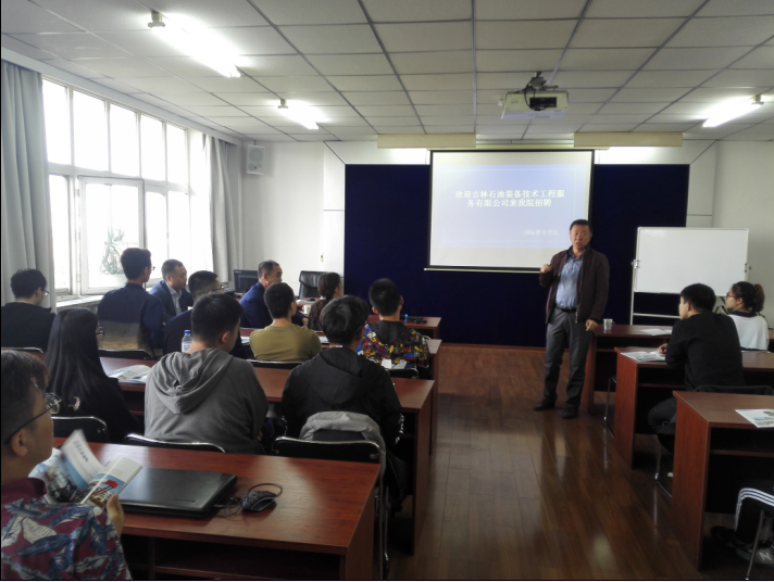高中伟介绍了石油设备行业的发展情况和前景,同时表达了对母校的深厚感情。翟战有详细介绍了专用车系列产品、钻井成套产品、采油设备系列产品等企业情况。人力资源部部长郝建峰详细介绍了此次的招聘岗位及员工福利,以及对于应聘者的具体要求和未来发展规划。同学们就关心的相关问题进行了现场咨询,12名同学与企业达成了就业意向。