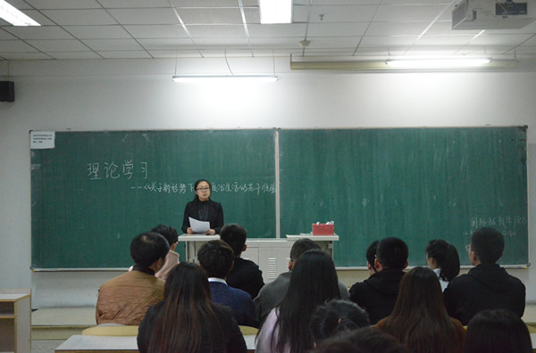 直属党支部在2017年11月1日于南湖校区教学科研楼2107组织召开了支部党员理论学习会。本次会议由辅导员李守瑶主持,新青年理论协会负责人孔庆研主讲,自拍流出