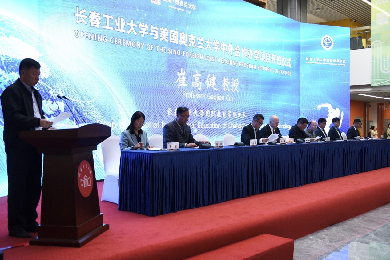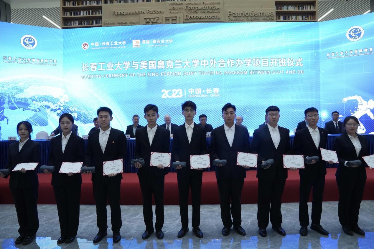 开班仪式上,王二辰副校长对美国奥克兰大学代表团和全体2023级新同学表示热烈欢迎,向同学们介绍了学校的办学历史和我校中外合作办学项目师资配置、人才培养模式、专业优势等情况。他指出,我校中外合作办学项目毕业生专业基础扎实、英语综合应用能力高、实践创新能力强,办学声誉逐年提升。他鼓舞新同学,大学生活犹如一幅崭新的画卷,在你们面前徐徐展开,希望同学们以饱满的热情和昂扬向上的斗志,为自己的青春画卷涂上浓墨重彩的一笔。